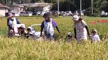 田んぼの中をさんぽする保育園児